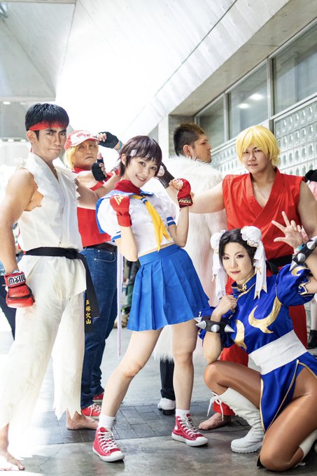 初めてお会いしたGayaさんの要望で「ゲーメストのピンナップぽい集合」をコンセプトに撮ってもらいました😆ありやす!! リュウ:桜庭仁 | さくら:イッチー | ケン:DAIGO | 春麗:あづみん | テリー:DIO | 山崎:はべ | 📷Gaya #WF2023S #ワンフェスコスプレ #格ゲーコスしようぜ