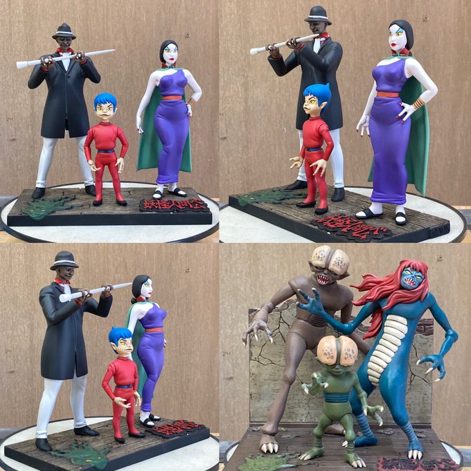 展示用サンプル出来たよ。 当時の設定画みたいに、ちょっと野暮ったいポーズ、色もセル画っぽくしときました。 ベム・ベラ・ベロ人間バージョン ¥10,000 ベム・ベラ・ベロ妖怪バージョン(最終再販) ¥12,000 ローポリニャンコ 白、黒、茶 各¥500 #WF2023S #ワンフェス2023s #ワンフェス2023夏