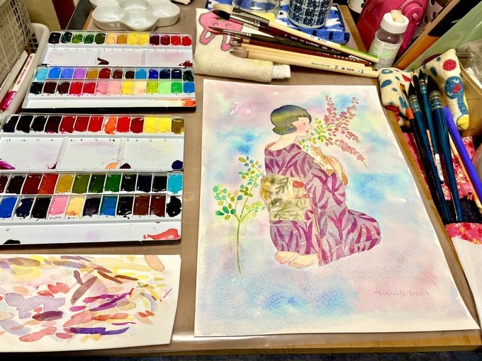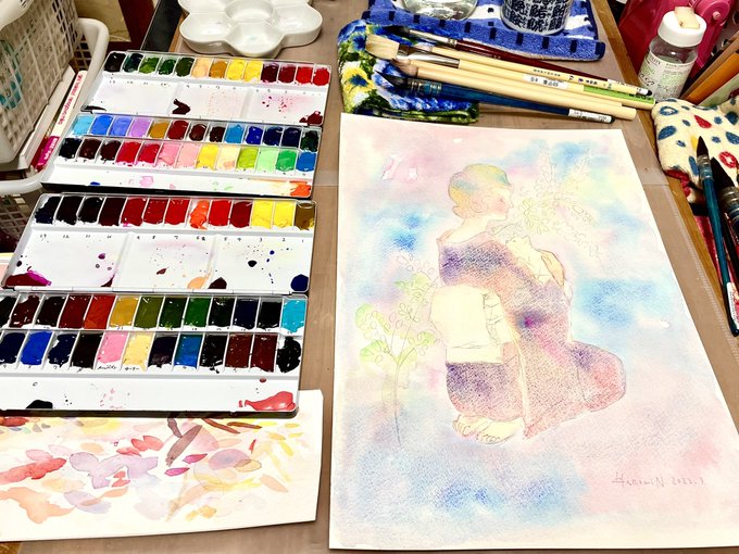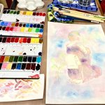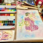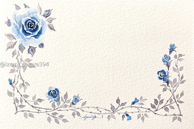 「薔薇カード」 はがきサイズ #ワーグマン 中目 #なめキラ グレーに見えますが、渋キラからブルー・グリーン・イエローをチョイスして。 #watercolor #透明水彩 #水彩絵を流して水彩民を増やそう #芸術の輪 #みんなで楽しむTwitter展覧会 #potofu