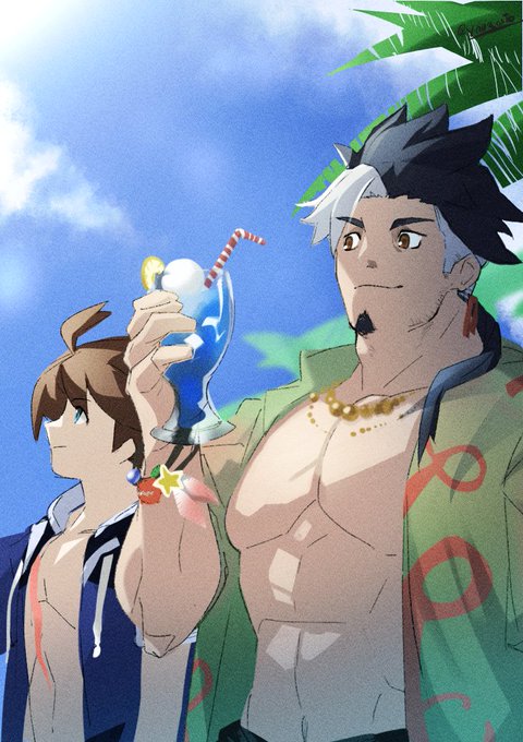 『キノから逃れられないリュウイチ』 正直リュウイチの夏バージョンが来るとしたら浴衣じゃないかと勝手に思っていた。浴衣キャラもまた実装されないかなぁ。というかもう事件とか起こらなくていいからみんなでワの国で遊ぶ話が読みたい。 #ワーフリファンアート #ワーフリ