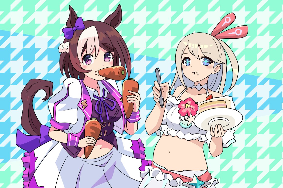 【スペシャルウィークのイラスト ~にんじんハンバーグの写真を添えて~】 なんとか終了までに間に合ったぞ! ステキなコラボでした~😊 #ワーフリウマ娘コラボ #ワーフリ #ワールドフリッパー #ウマ娘 #スペシャルウィーク #にんじんハンバーグ #イラスト