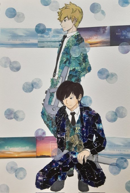 #ワールドトリガーファンアート #犬飼澄晴 #二宮隊 今日新しいマステをGET😊 🐶先輩概念のマステを選んだ結果 エンタメくじの🐶先輩に仕上がりました✨ 色んな空を貼ったのは 🐶先輩の魅せる顔を表現してみたよ😊