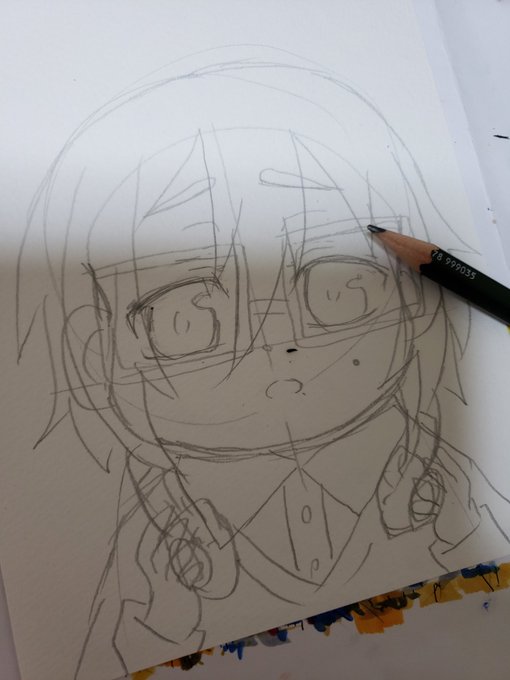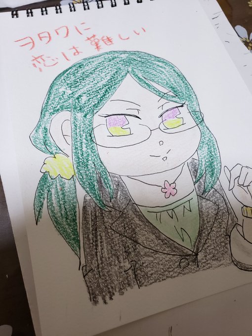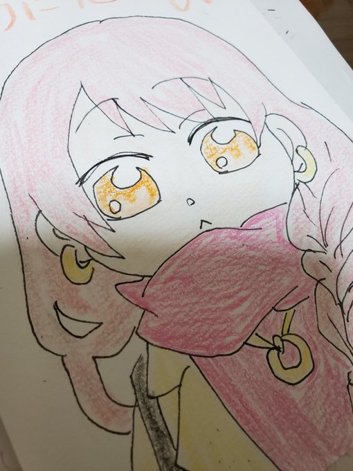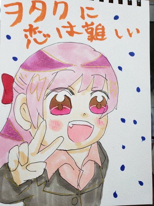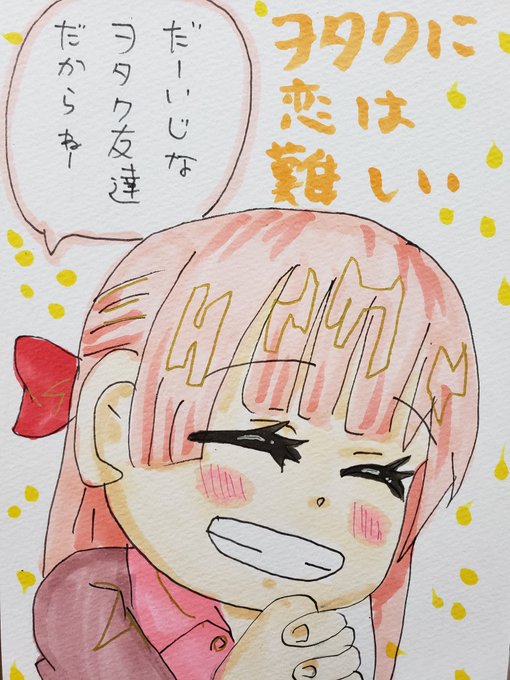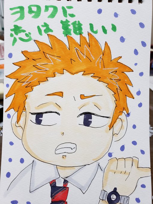 #絵描きさんと繋がりたい #イラスト #デフォルメ #ヲタクに恋は難しい #色鉛筆 #絵柄が好みって人がいたらいいなぁ 3月にインナーカラーでピンクいれたけど、色がもっと抜けたら次はオレンジがいいなー! Fちゃんみたいにカーキもいいけど、カーキは私は似合わないだろうなあ(涙)