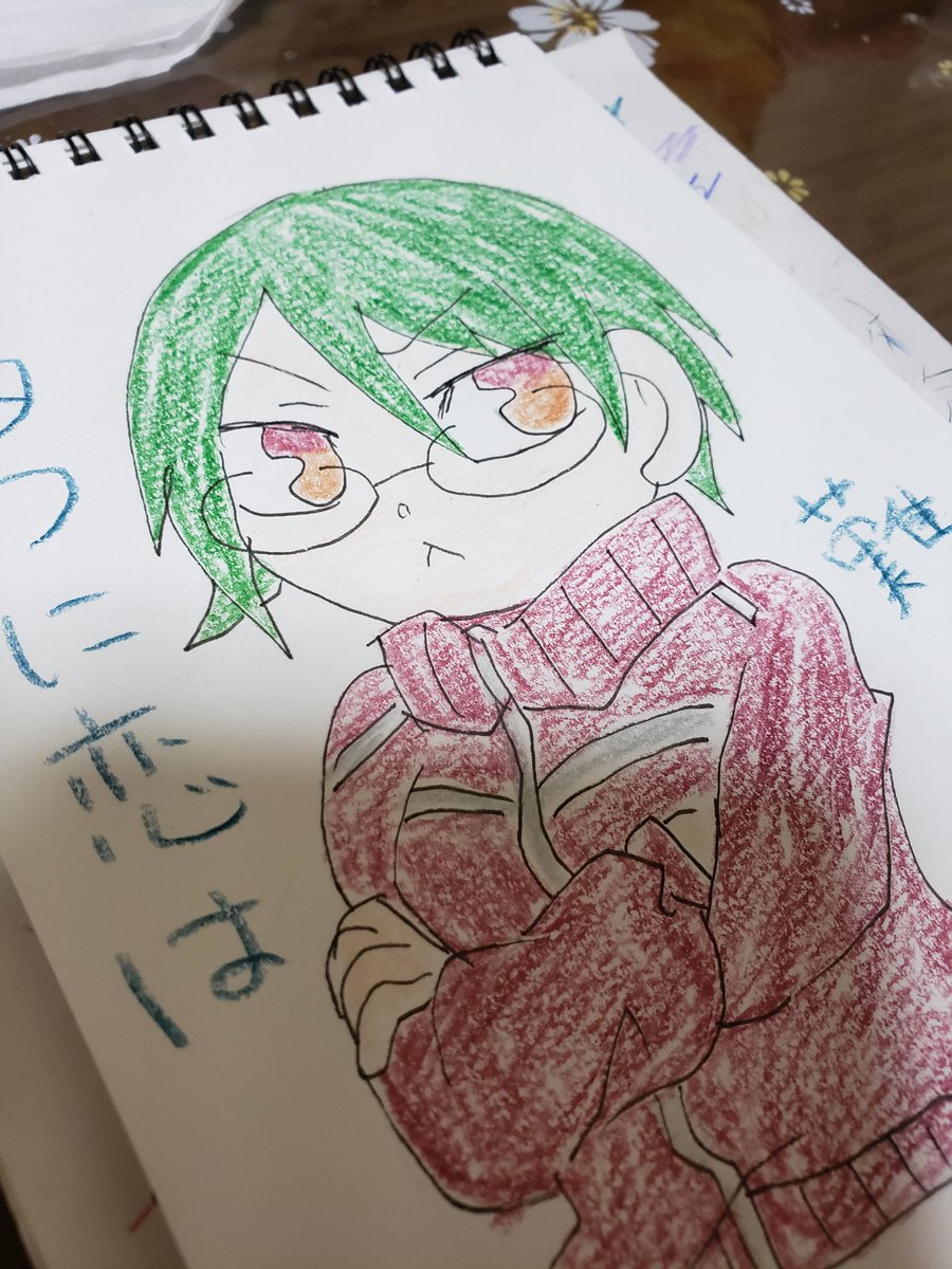 #絵描きさんと繋がりたい #イラスト #デフォルメ #ヲタクに恋は難しい #色鉛筆 高菜は辛いから苦手だけど好きです(笑) スーパーの高菜明太が好きでして、辛いの苦手だからちょっとの量でお茶碗1杯食べれます!!(*´・ω・`)b