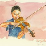 🎵🎼原画(#コンテ)を展示中 笹倉鉄平 Teppei Sasakura 『美術館前の響きの良いアーチの下が僕のステージ~His Stage is Under the Archway~』 2019年 笹倉鉄平ちいさな絵画館 kaigakan-teppei.net #笹倉鉄平 #絵 #音楽好きな人と繋がりたい #ヴァイオリン好きな人と繋がりたい #ヴァイオリン