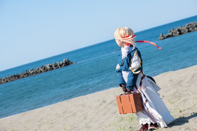 【コスプレ/Cosplay】 ヴァイオレット・エヴァーガーデン⇒SHyAN(8歳) カメラ📸⇒@_shigeto_ さん 浜辺で船をまってるみたいなヴァイオレットちゃん☺️ #Cosplay #コスプレ #ヴァイオレット・エヴァーガーデンコスプレ #ヴァイオレットコスプレ
