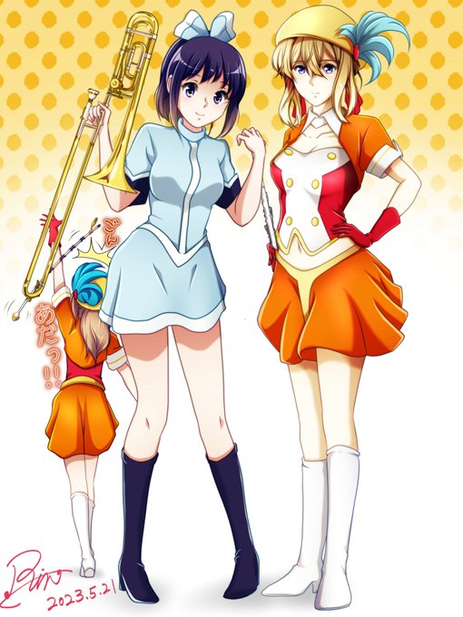 「水色の悪魔のオーラ流石なのです」 「お互い頑張ろうね❤」 「北宇治の実力、見せつけて差し上げるのです‼️」 ごん 「あだっ💦」 「ほ、本番はまだだから( ᐛ ;)」 #イラスト #ヴァイオレット・エヴァーガーデン #響けユーフォニアム #絵師さんフォロバ100