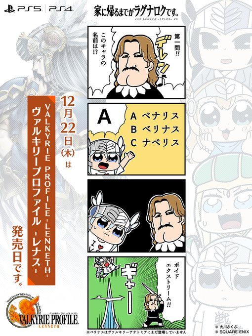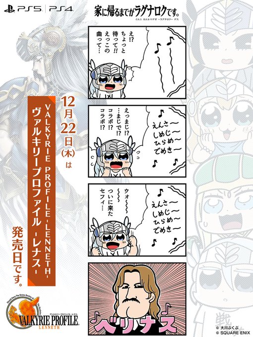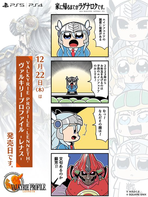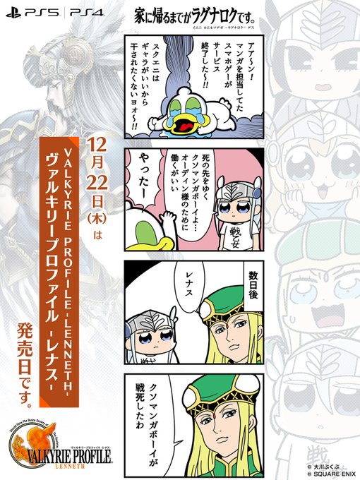 / 📢12月22日 PS5/PS4移植版『#ヴァルキリープロファイル -レナス-』発売! jp.square-enix.com/vp_lenneth/ \ ◤#VPレナス 応援企画◢ ━━━━━━━━━━━ #大川ぶくぶ 先生の四コママンガ「#家に帰るまでがラグナロクです。」を限定復刻カウントダウン投稿中! Chapter. ?:運命