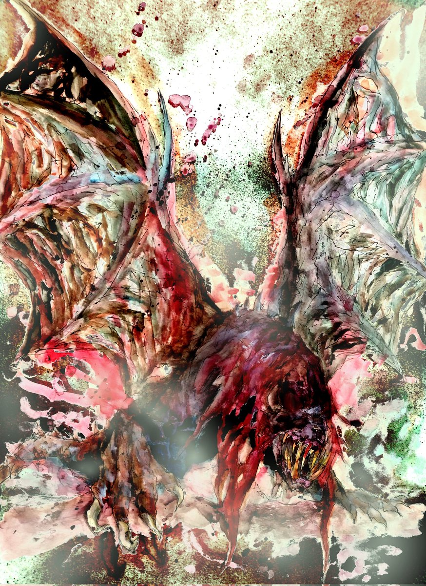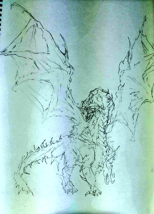 Vaal Hazak drawn with a brush pen 💀 筆ペンでヴァルハザク描きました #MonsterHunter #モンハン #ヴァルハザク #vaalhazak #art #drawing #illustraion