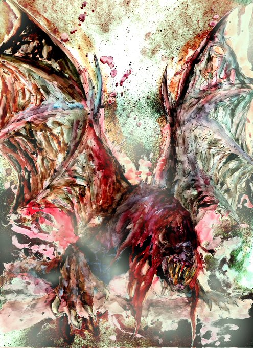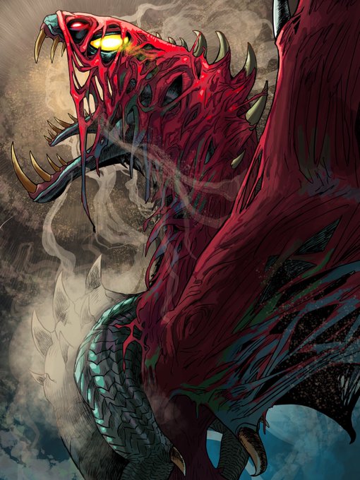 屍套龍ヴァルハザク ※リクエスト第116回 「瘴気ニ生キル屍」 #ヴァルハザク #MonsterHunter #モンハン #絵描きさんと繫がりたい #イラスト好きな人とつながりたい #絵柄が好みって人にフォローされたい