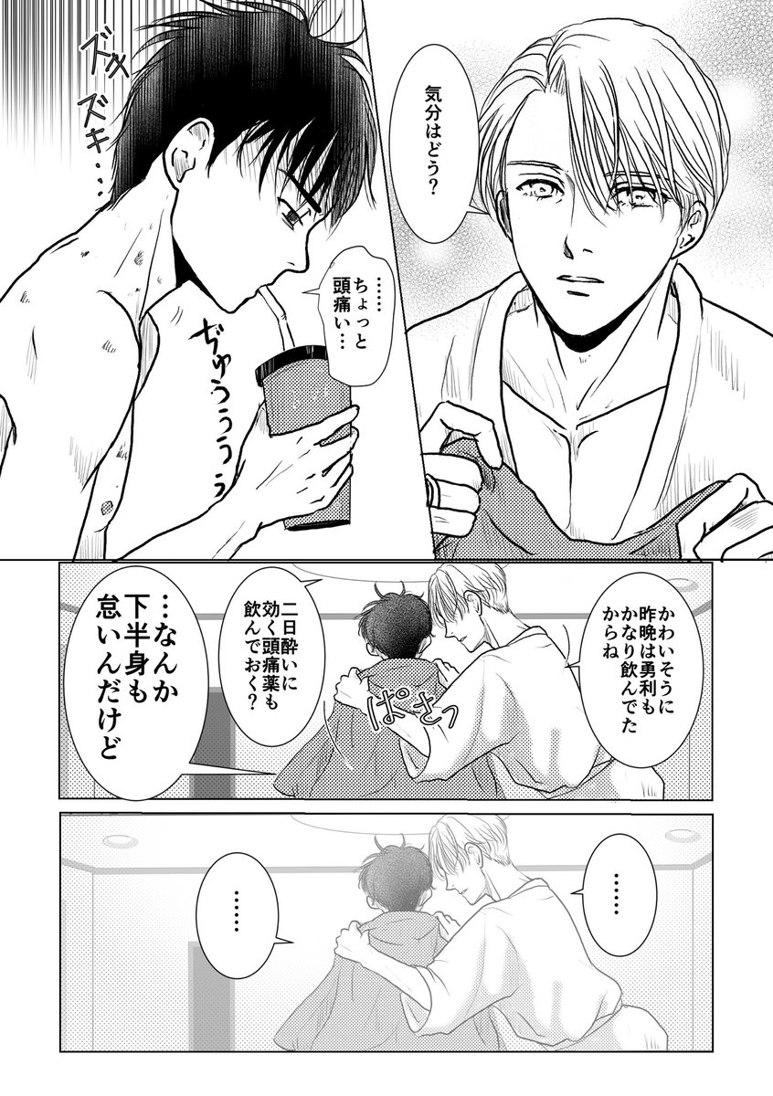 #ヴィク勇 両片思いハピエン5話1/4 ⚠️二人の間を邪魔するモブ出ます⚠️ 苦手な方はご注意ください もう時間経ちすぎてどんな話か忘れてますよね。私も読み返しました。🙈 1話→ pixiv.net/artworks/73899…