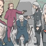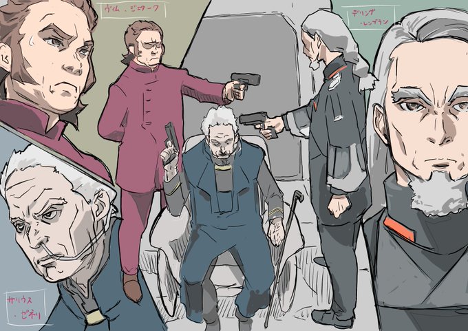 ベネリットグループ おえらいさん。 ミオリネのお父さんや、グエルのお父さん、シャディクの養父という 言い方で、将来忘れそうなので、描いてみました。 デリングはまあ、覚えやすいかな。 #水星の魔女 #デリング・レンブラン #サリウス・ゼネリ #ヴィム・ジェターク