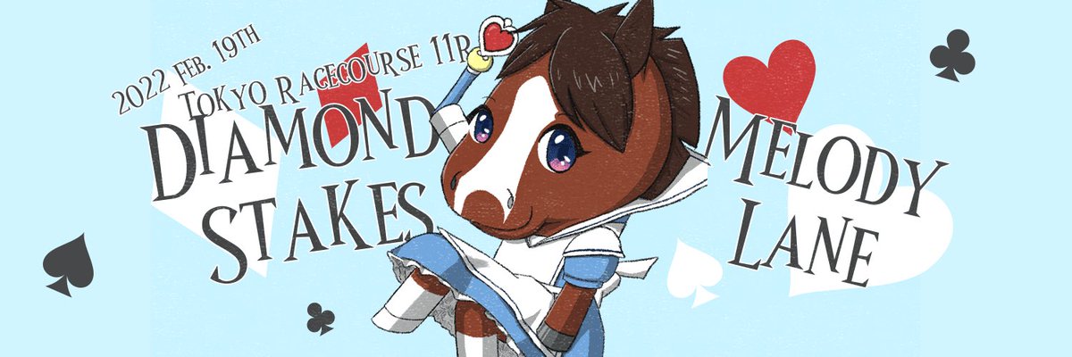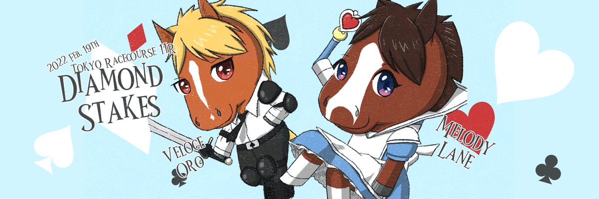 今日のメロちゃん 238 ダイヤモンドステークス💎応援イラスト📣ヴェローチェオロくんとともに✨ ヘッダー横断幕お好きなのどうぞー🏁 #メロディーレーン #ヴェローチェオロ #ダイヤモンドステークス