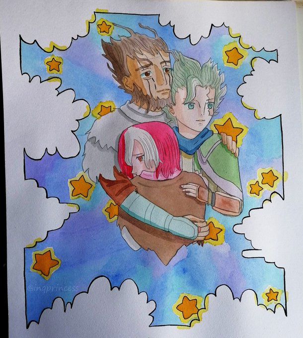 #メイドインアビス #miabyss #madeinabyss #watercolor #grass #ヴエロエルコ #ベラフ #ワズキャン Summer triangle. I drew it again.
