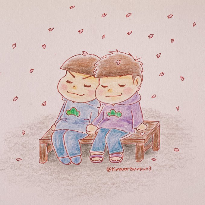 #一カラの日 #4月2日は一カラの日 11時42分(いい一カラタイム)に100均ラ手松な春の一カラ!! 4男は頭がさくらまみれになっているのに気づかない2男の代わりに花弁を取ってあげています