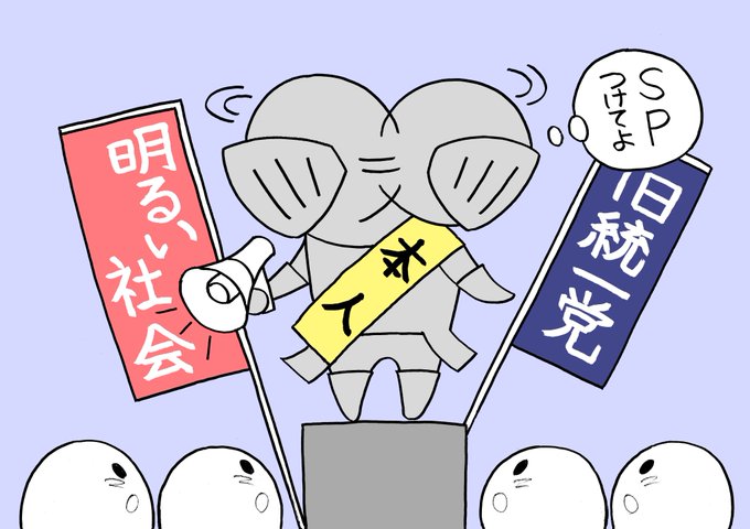 #マンガ #漫画 #まんが #漫画好きな人と繋がりたい #漫画がよめるハッシュタグ #漫画が読めるハッシュタグ #マンガが読めるハッシュタグ #漫画家志望さんと繋がりたい #漫画家志望 #創作漫画 #一コマ漫画 #1コマ漫画 #一コマ 襲撃を恐れつつ選挙演説する政治家の姿を描いた1コマ漫画「勇敢な候補者」