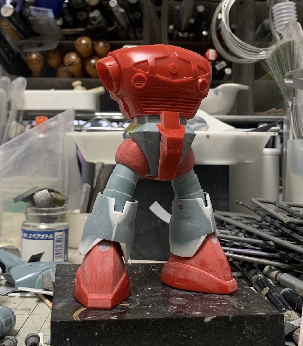 下半身に関節を仕込みまくって立ち姿が安定した。画像は変わり映えしないが; 作業の切りが付かずに朝まで弄ってしまった;ゾゴック楽し過ぎて困るーww #一ヶ月戦争vol3 #旧キット #ガンプラ