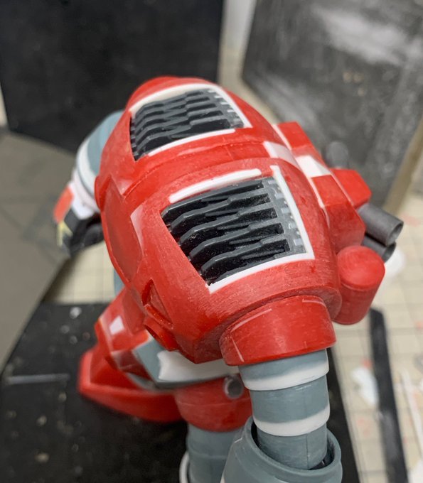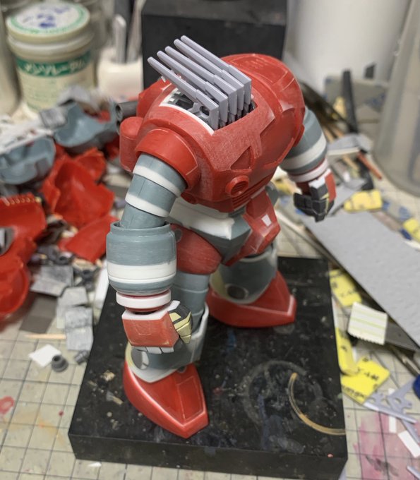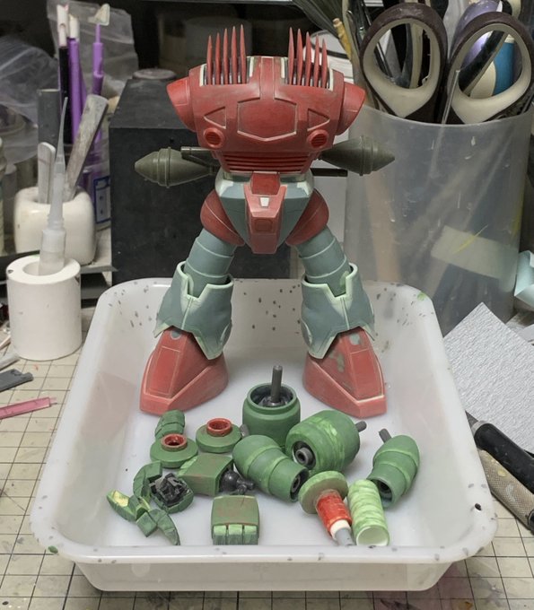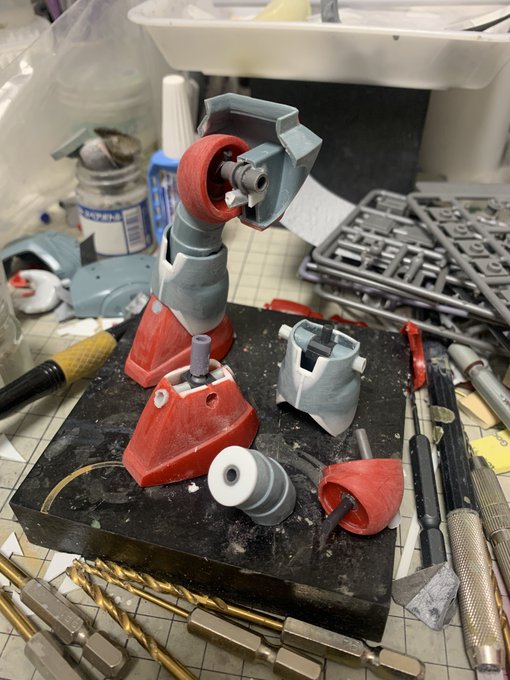 本体にはほぼほぼディテールが入った感じ。ひと息ついたら左肩の痛みに気付いた。2回目のワクチン接種から12時間経過、寝て起きたら発熱してるかなー。暫くこのまま眺めてる事になるかもです; #一ヶ月戦争vol3 #旧キット #ガンプラ