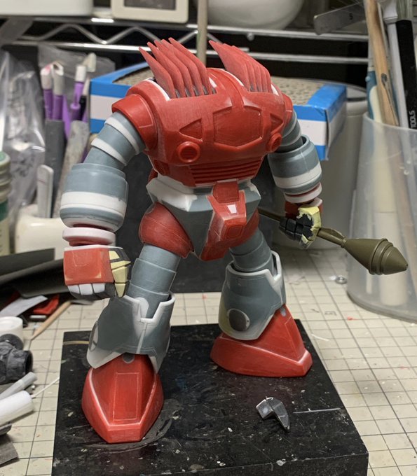 手ぶら状態なのもちょっと寂しい気がしてきた。親指を取り換えればシュツルムファウストくらいは持たせられそうだ。余ったエポパテを盛り付けてから寝よう。 #一ヶ月戦争vol3 #旧キット #ガンプラ
