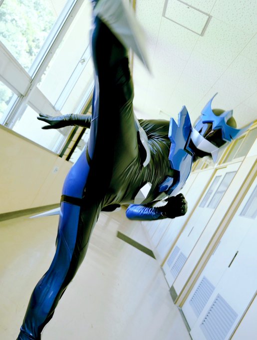 【コスネーム】カニ🦀 【作品名】ウイングマン 【キャラ名】ウイングマン 【一言】アクション 原作のサイバーなイメージを独自解釈しつつ、ポージングにも配慮した素材のスーツにしました。 #コスモスナップ011 #コスモスナップ #COSPLAYMODE #コスプレ #ウイングマン #やぎゅこす #一介の写真館