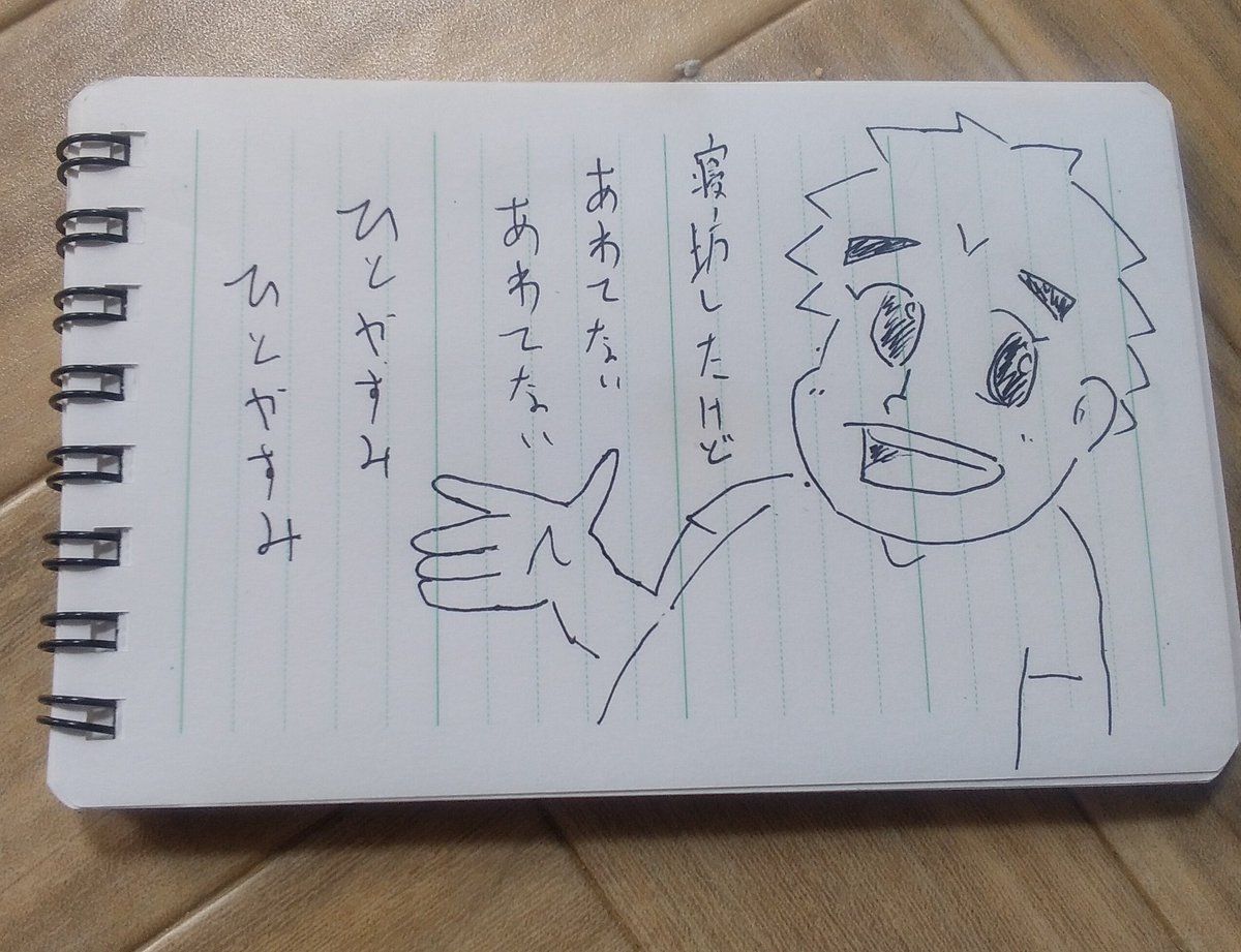 7/5 疲れて寝すぎて寝坊 いつも早い電車に乗ってるので時間的にはまだセーフ だから、 あわてない あわてない ひとやすみ ひとやすみ #絵日記 #一休さん 余談ですが、2枚目は 「最高ランク ベジータ使用」 に読めて買ってしまったおにぎりです #最高ランクベジータ使用 #最高ランクベジョータ使用