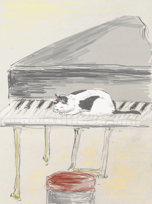 【ピアノ】やっぱりグランドピアノ🎹は美しいなあ✨…ん?あの猫🐱は…😨⁉️…よく寝てます💤。ウチの猫🐱ちゃんですbyピアノ講師😊 #1コマ #イラスト #ピアノ #鍵盤 #猫 #一体化 #ピアノ教室 #イラスト好きな人と繋がりたい #猫好きさんと繫がりたい #絵描きさんと繫がりたい #絵師さんと繋がりたい