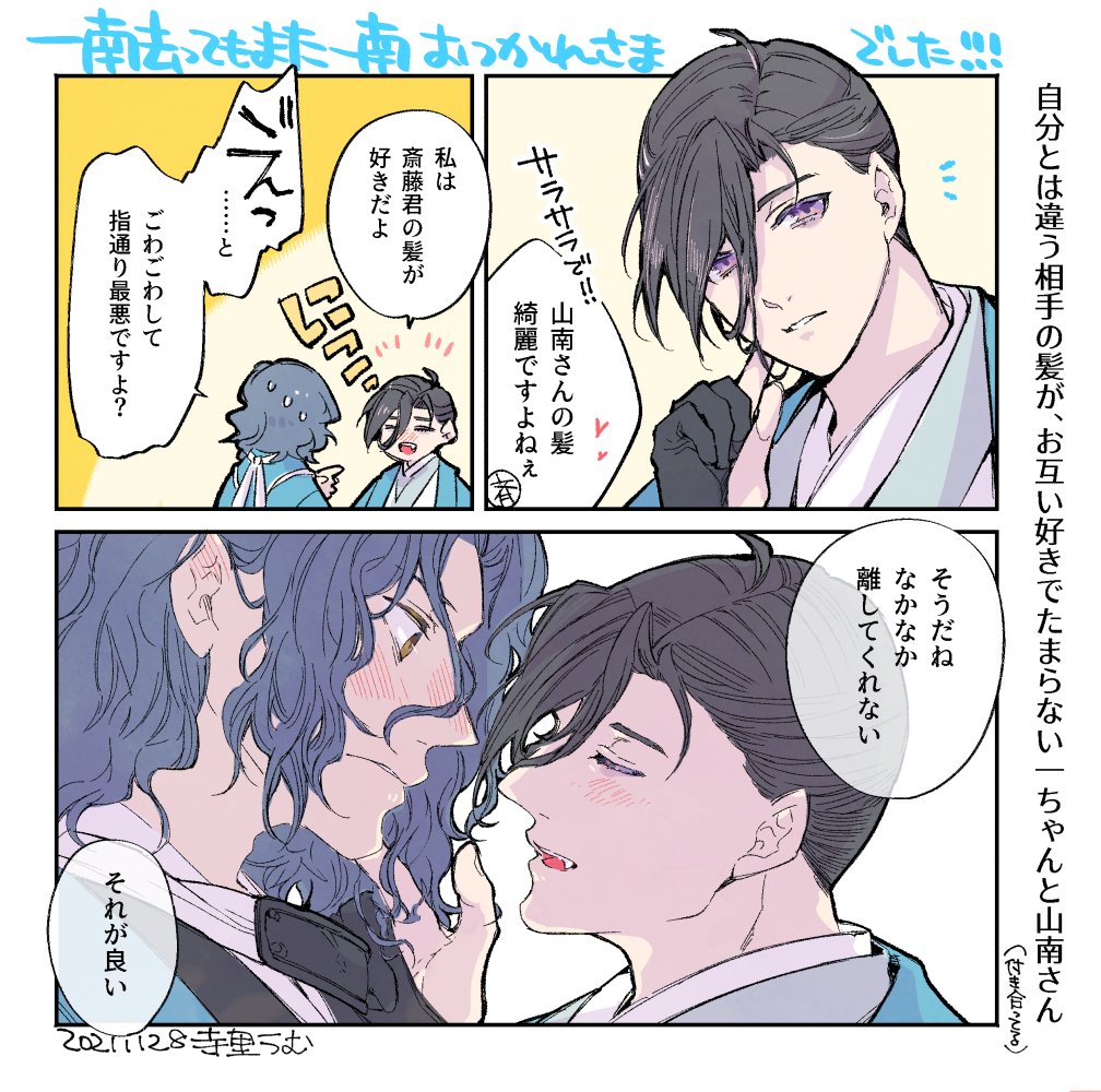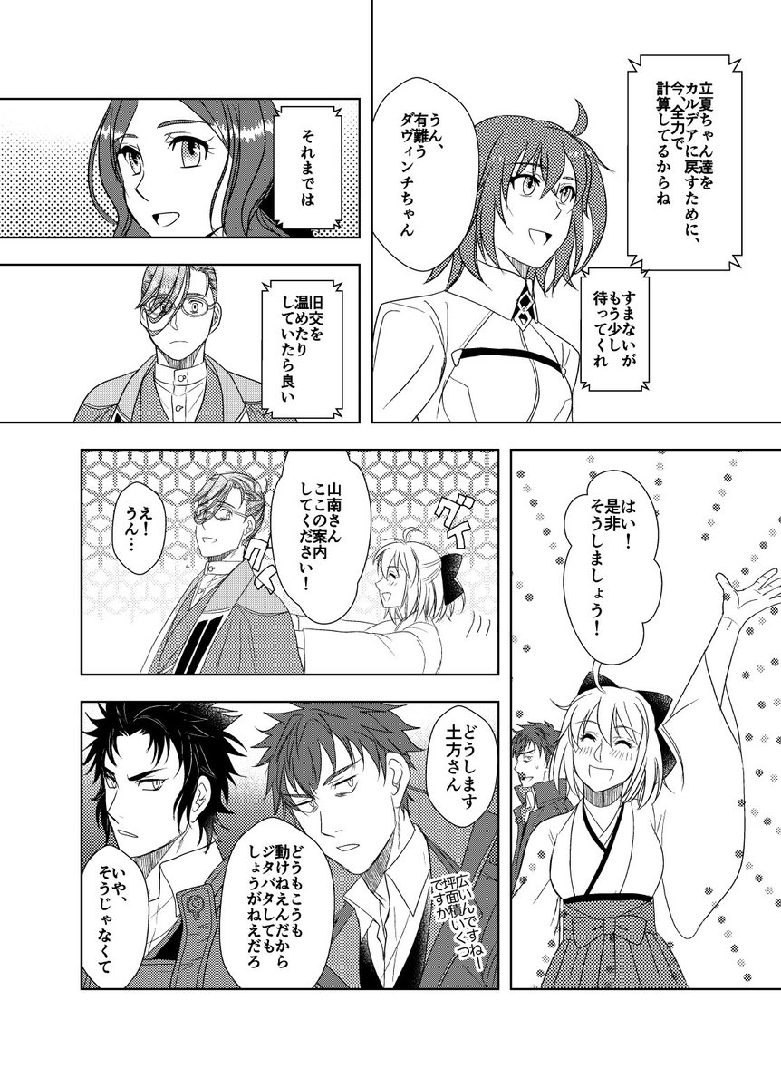 11/28 第35次 ROOT 4 to 5内斎山プチオンリー「#一南去ってもまた一南 新刊サンプルです。支部にもう少しサンプルあります。pixiv.net/artworks/94375… 邪馬台国後、とある本丸の審神者になった山南さんがカルデアのはじめちゃん達と再会する話と、山南さんと刀剣男子たちのギャグやほのぼのです。