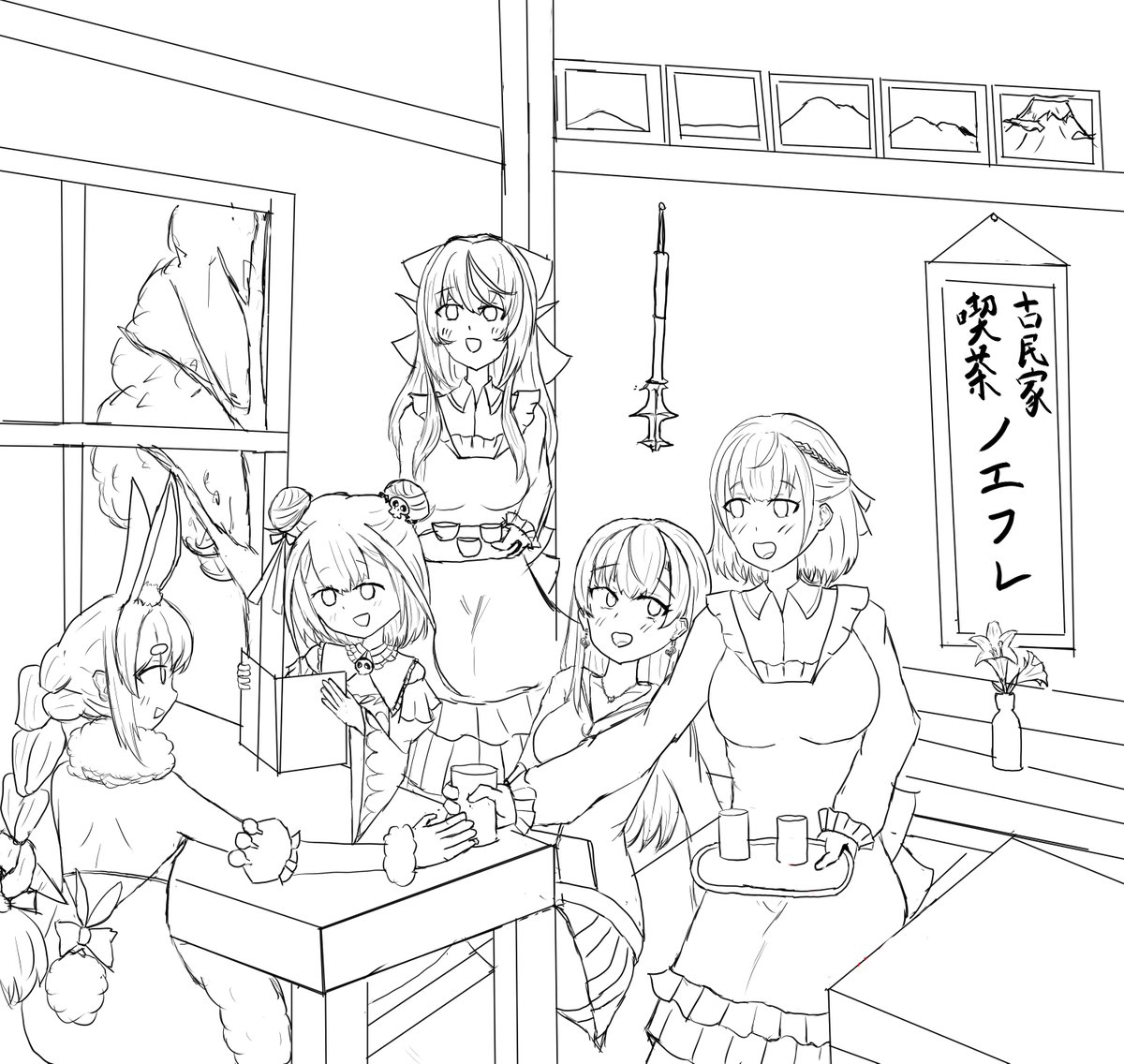 ちなみにラフはこちらです、 最初はグループの皆様の意見で 「フブちゃんのコスプレしつつ戦ってる船長」 をお題にさせていただきました💕 線画担当のアボカドまぐろさん(@Amagu_VOCADOro)も 塗り担当のえみかんさんもありがとうございます🙏✨ #一味お絵描きリレー twitter.com/emikanpeanuts/…