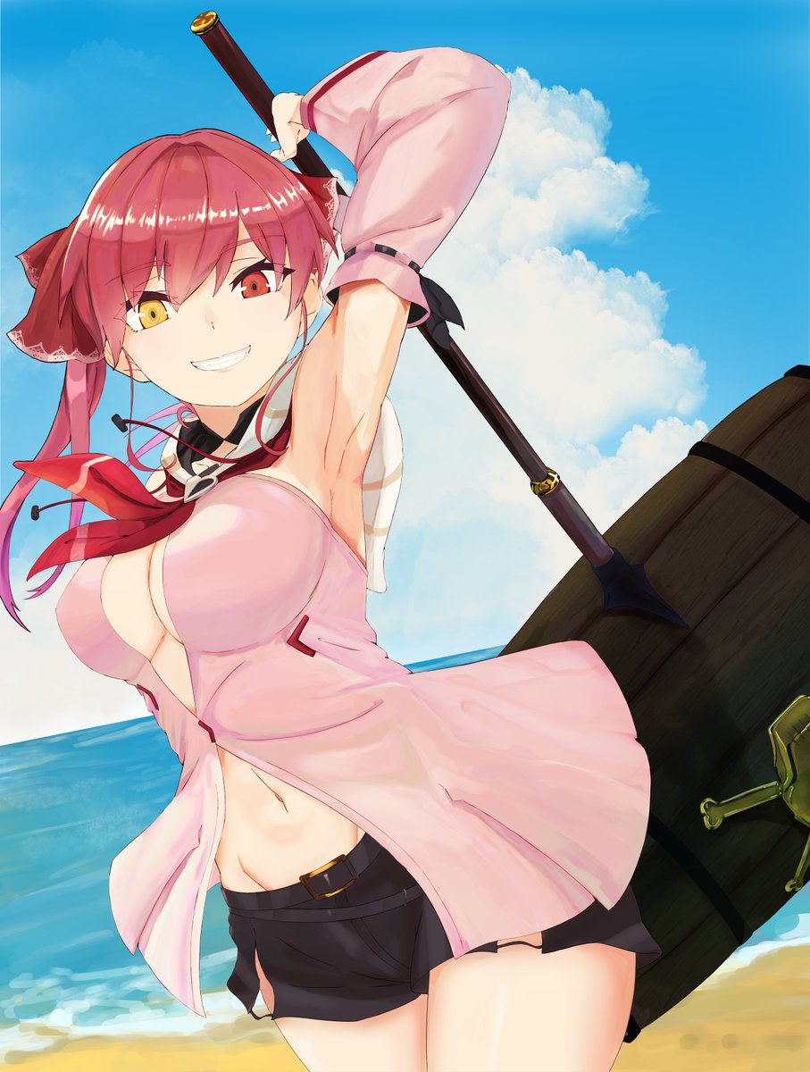 柿崎飛鳥さん(@Asuka_kakizaki )主催の、#一味お絵描きリレー に参加させて頂きました!✨️ ラフをえまさん(@marinn_fan ) 線画をみさきんぐさん(@mskng_k ) に担当していただき、自分は塗りを担当させて頂きました‼️✨️ 彼シャツJKマリン船長…若い!!!! 今回はありがとうございました‼️
