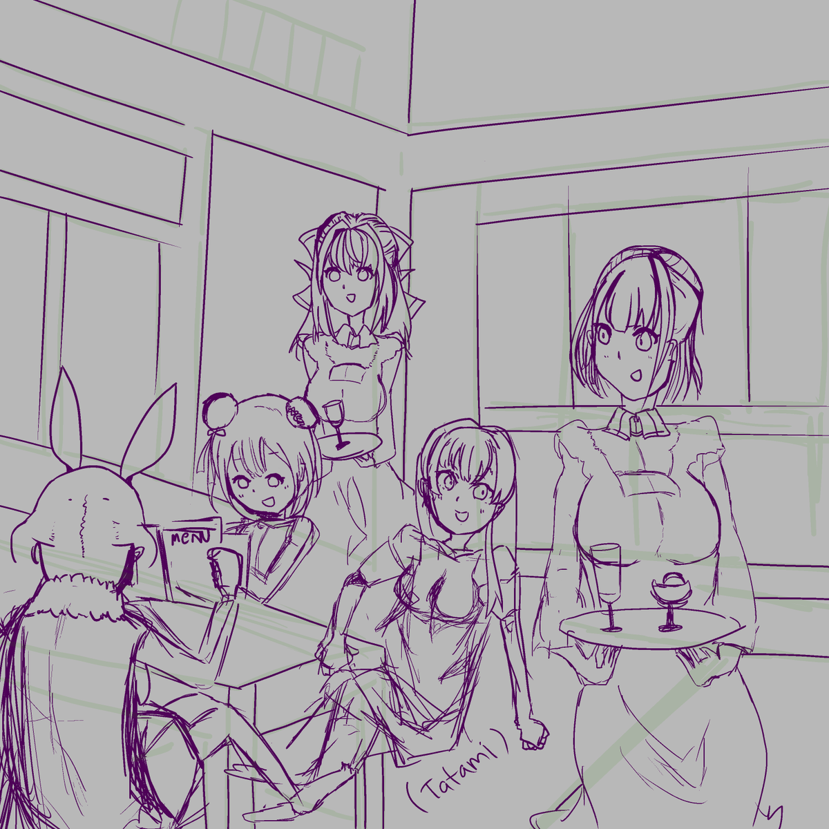ラフ そこら辺の妖精さん(@yo__se__san) 線画 アボカドまぐろさん(@Amagu_VOCADOro) ラフも線画もうますぎてびびりたおしてましたがめちゃくちゃ楽しかったです! びびって出せなかった背景あり版ものせときます! #マリンのお宝 #一味お絵描きリレー