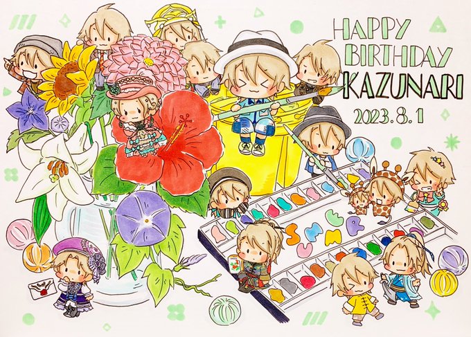 Happy Birthday !🌺 これからの新しい1年も彩りに溢れますように🖌🌈🎨 夏組のみんなと、カンパニーのみんなと、また新しい夢を追いかけてください! #三好一成生誕祭2023 #三好一成誕生祭2023 #一成ぶるーみんぐ