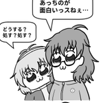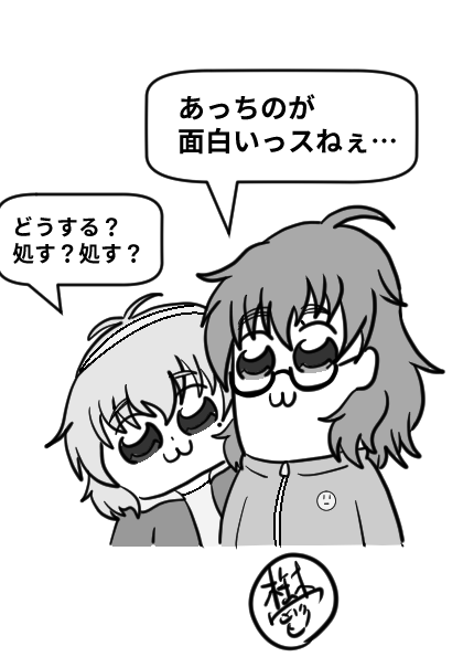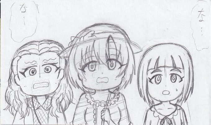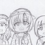 #一日一枚絵を描いて投稿する 今日もサボり分の返済です ・『ユメヒナピピック改』でゲスト寄稿告知の挿絵にしようかと思ってた没案(1/21) ・原稿作業中にふと思いついた没案の改良型(元ネタは『怪獣総進撃』)(1/22)