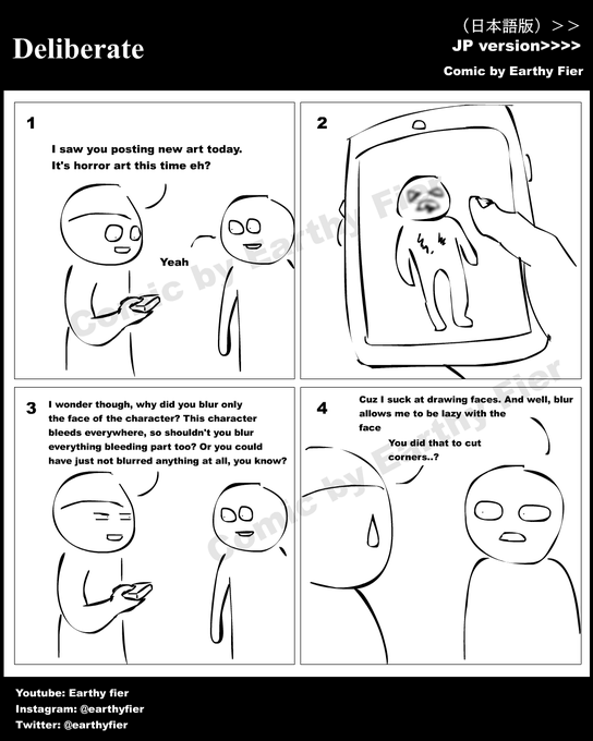 instagram.com/earthyfier/ ^See more 日本語付きの漫画 Multilingual comic EP 465 Deliberate わざとらしい #イラスト #絵描きさんと繋がりたい #みんなで楽しむTwitter展覧会 #漫画が読めるハッシュタグ #4コマ漫画 #comic #一次コミ #Twitter交流会会場 $picrt #落書向上委員会