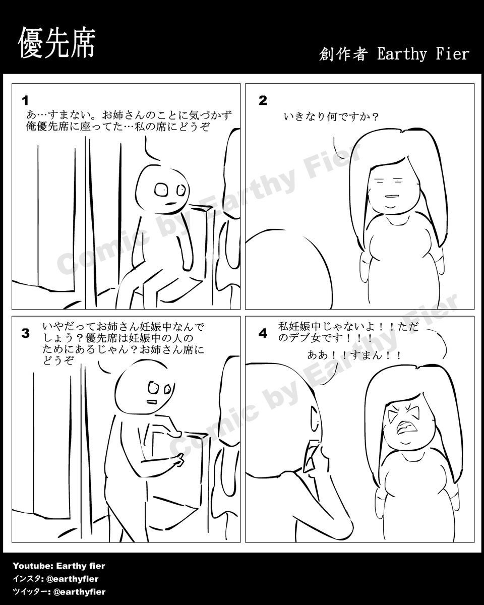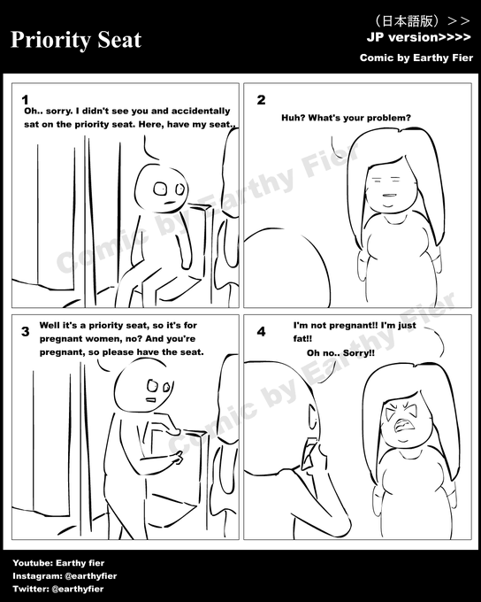 instagram.com/earthyfier/ ^See more 日本語付きの漫画 Multilingual comic EP 468 Priority Seat 優先席 #イラスト #絵描きさんと繋がりたい #みんなで楽しむTwitter展覧会 #漫画が読めるハッシュタグ #4コマ漫画 #comic #一次コミ #Twitter交流会会場 $picrt #落書向上委員会