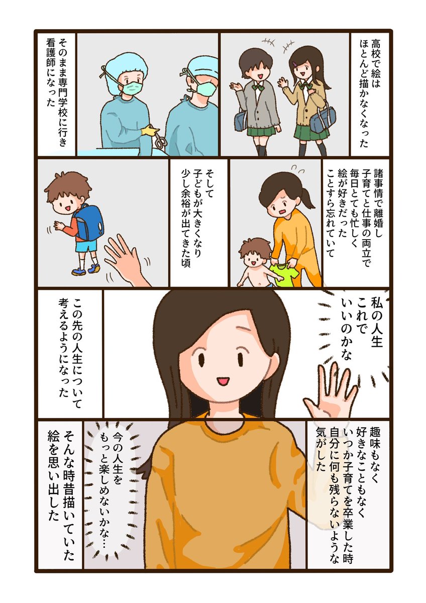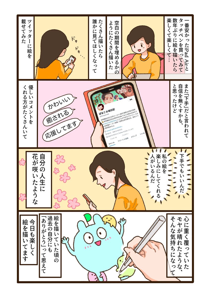 私が再び絵を描くようになった理由を漫画にしました。 我慢してるって自覚すらなく心の奥に押し込めてることがあるから、本当にやりたいことが何か、皆さんの心に聞いてみるきっかけになったらいいなと思います🌟 #漫画が読めるハッシュタグ #一次コミ #コミックエッセイ #あなたの夢教えてください