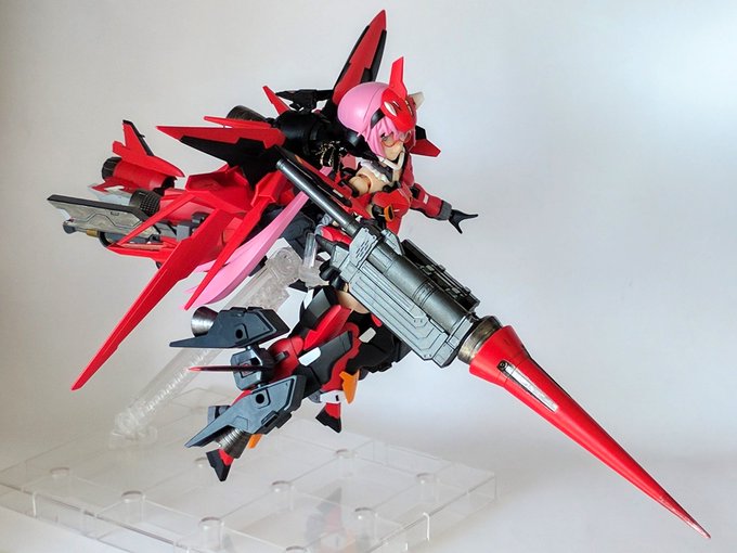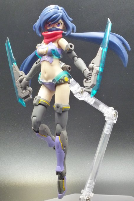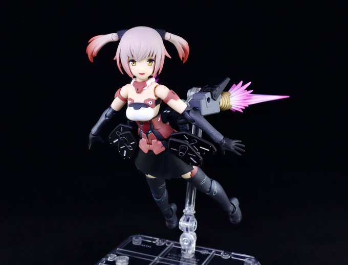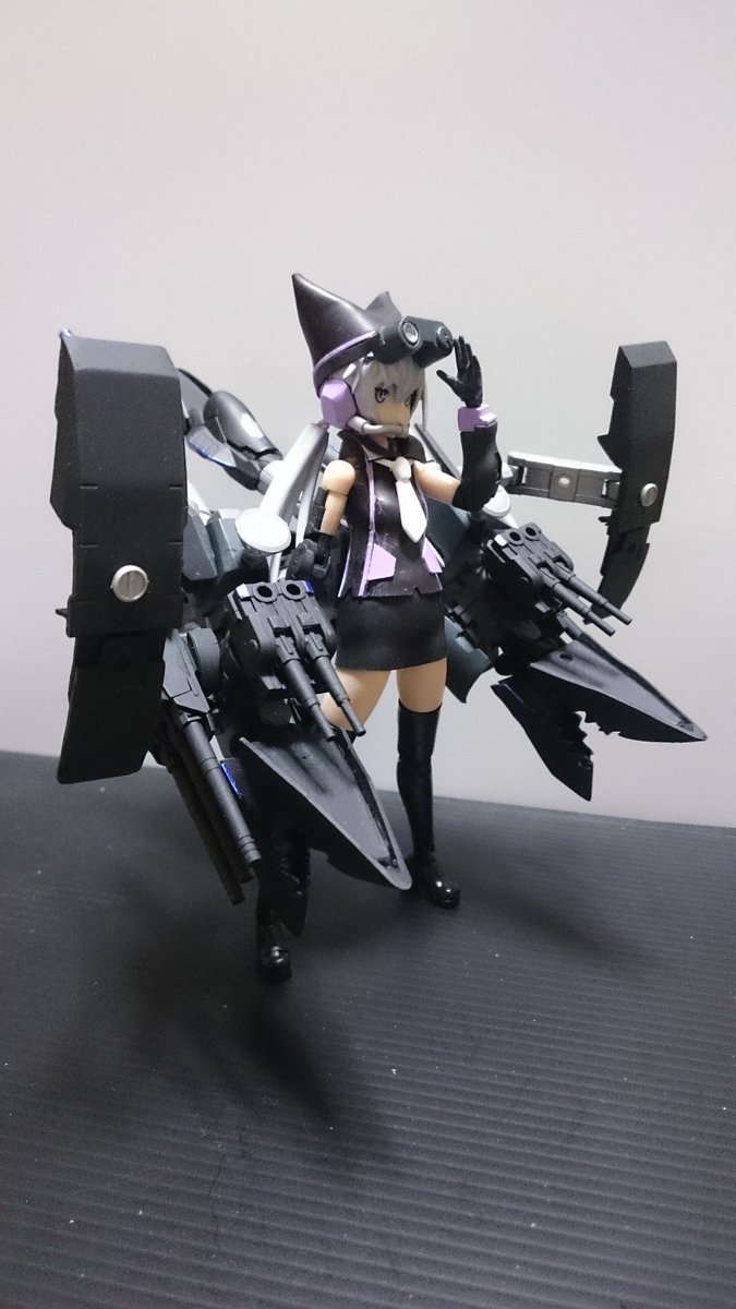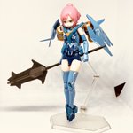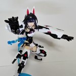 轟雷の予約戦争に負けて、初めて手にしたのはスティレットだった (残っている写真が背景汚いのしか無かった) 改造というか色変えで最初なのはメガミデバイスのランチャー #一番最初に作った美プラ晒そうぜ #メガミデバイス