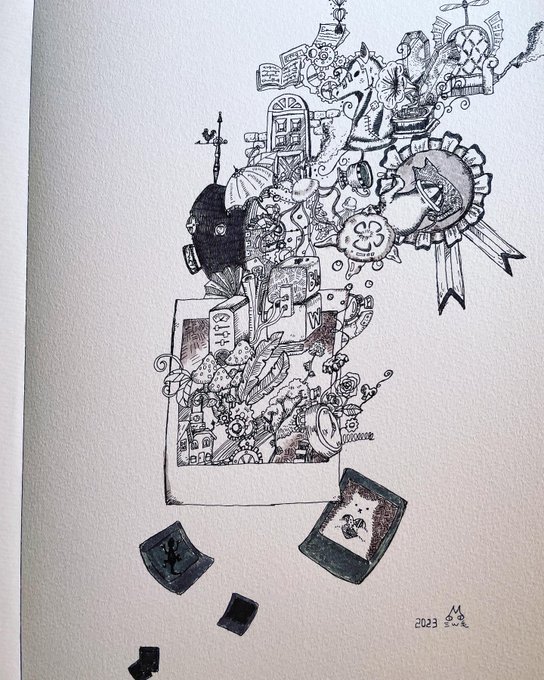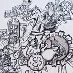 完成。今回はグレー系のカラーペンも使いました。…カラーペンは要練習です。 #アナログお絵描き#ボールペン画 #スチームパンク #キノコ #クラゲ #一発勝負 #illustration #steampunk #mushroom #jellyfish