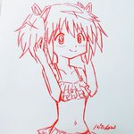 いつものごとく筆ペンで描いたよ麻雀コラボまどか 上着取ってます💦 下半身どうなってるかわからないのでちと適当です😅 #鹿目まどか #魔法少女まどかマギカ #一発描き 滲むかもだけど塗ってみます (๑ •̀ω•́)
