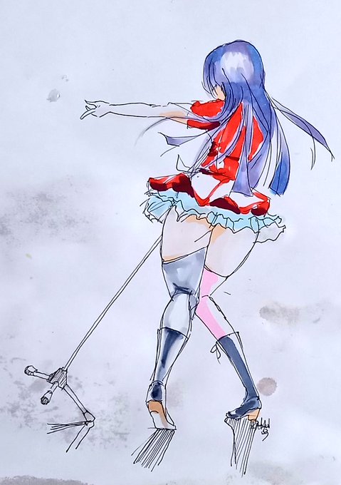 一発描き🐰80日目 フィギアのスケッチ 26分 さぁ写真撮ろうって移動して手になにか当たったと思ったら、コップを倒して水をぶちまけた!用紙がずぶ濡れ💦 #一発描き #art #drawing #模写 #illustration #イラスト #100日チャレンジ #絵柄が好みって人にフォローされたい #優木せつ菜