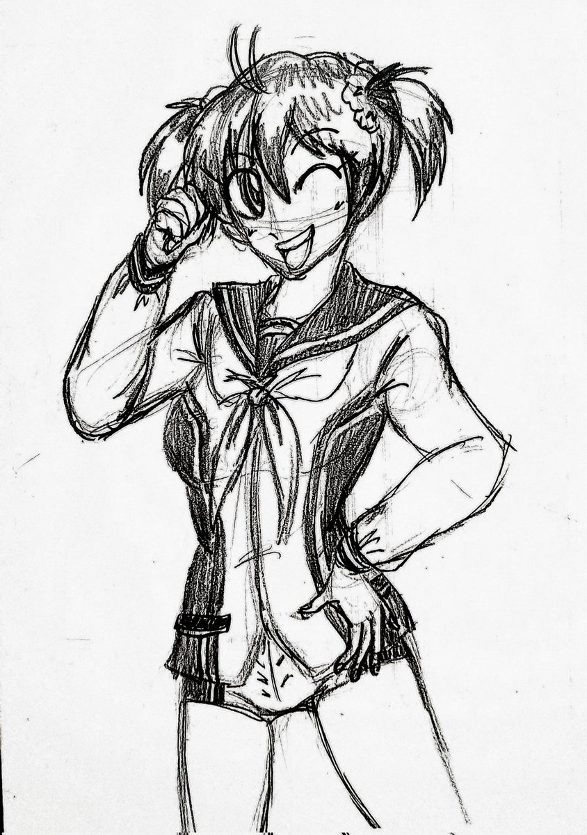 お仕事終わり、今帰宅中です☺️ 雨降らないうちにお仕事終わり、ひと安心です☺️ 曇天の中、安全第一で帰宅します😃 #落書き 、「 #ビビッドレッドオペレーション 」より #一色あかね ちゃん🌟