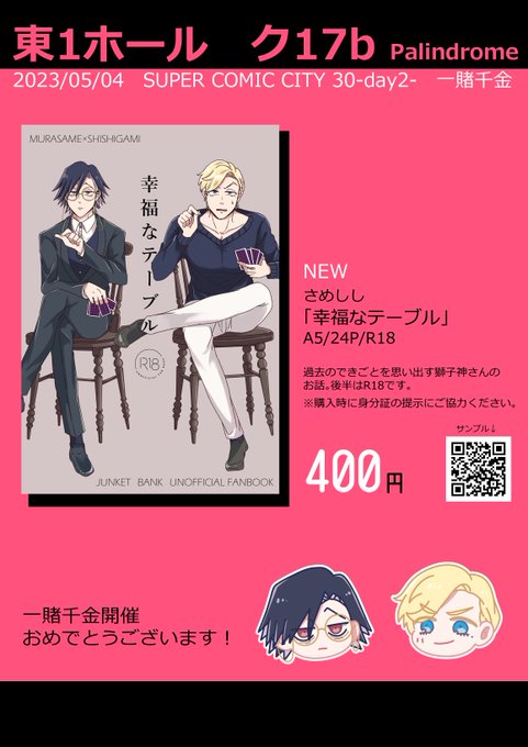 5/4スパコミのお品書きです #一賭千金 【東1 ク17b】Palindrome 新刊サンプル:pixiv.net/artworks/10741… 🐯通販:ec.toranoana.jp/joshi_r/ec/ite… 当日はよろしくお願いします~