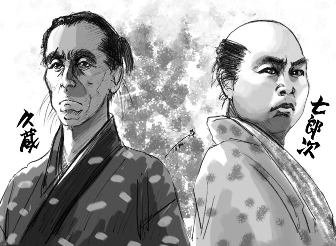 4月26日は公開を記念した【#七人の侍の日】! 同じ昭和29年(1954)の11月には #ゴジラ 公開。いずれも邦画そして映画史を代表する超傑作である。 (*゚ω゚)ノ 今年は久蔵と七郎次♪ #1年間で絵が上達してるか見てみましょう #1日一点とにかく描く #今日は何の日 #アナログ絵