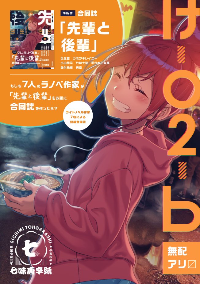 合同誌「先輩と後輩」 表紙デザインやリーフレットデザインはsiroさんにやっていただきました。 僕らのロゴも siroさんの作品なんだぜ🌶✨ 創業令和元年!! #C99 #七味唐辛紙 twitter.com/shiroshiro9/st…