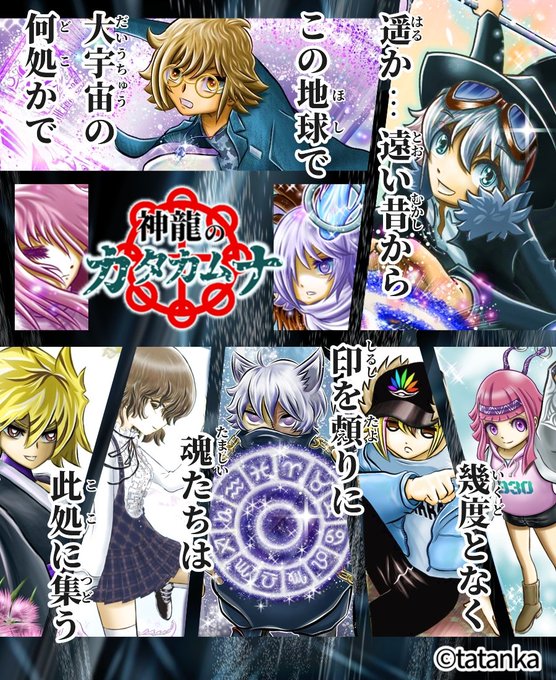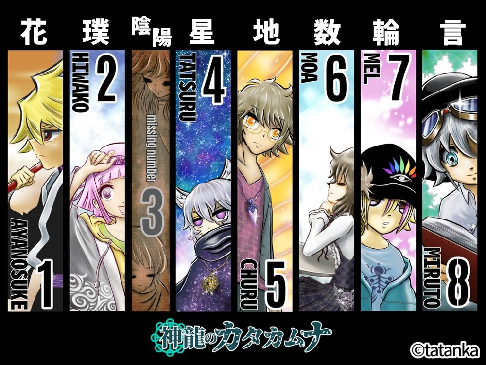 にゃんこさんバトンありがとうございます😆 過去絵を修正したオリキャラ集合のクリアファイルの様な何かのイラストですっ #引用RTで絵をあげて5人指名してバトンでお気に入りの絵を載せる #神龍のカタカムナ #オリキャライラスト #七星霜 twitter.com/explosion715/s…