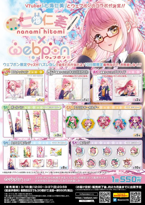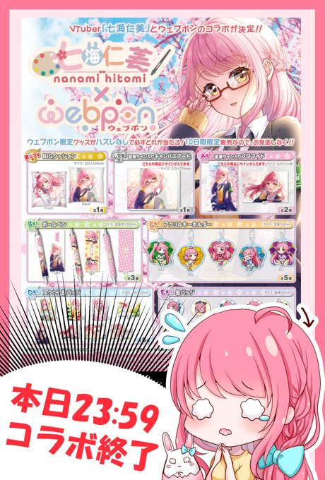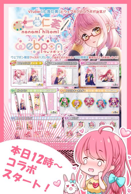 \ 七海仁美✖️ウェブポンコラボ / 皆んなのおかげで… ウェブポン様とコラボさせて頂ける事になりました😭🌸✨ 新規描き下ろしイラスト18点‼️ 限定グッズ が ハズレなし でガチャガチャ出来ますっ🥰✨ 🐰販売期間 : 3/18 (金) ~ 2/27 (日) 🐰詳細 【webpon.net/shop/HTNN/plan…】 #七海ウェブポン