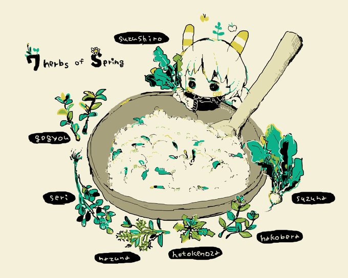せり なずな ごぎょう はこべら ほとけのざ すずな すずしろ にゃんにゃんまんじゅう #七草の日 #絵柄が好みっていう人にフォローされたい #イラスト #イラスト好きな人と繋がりたい #絵描きさんと繋がりたい #ねっ娘