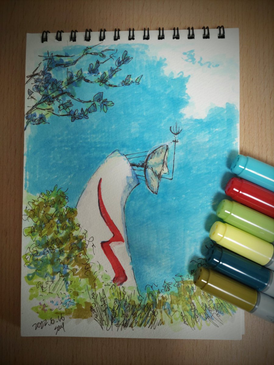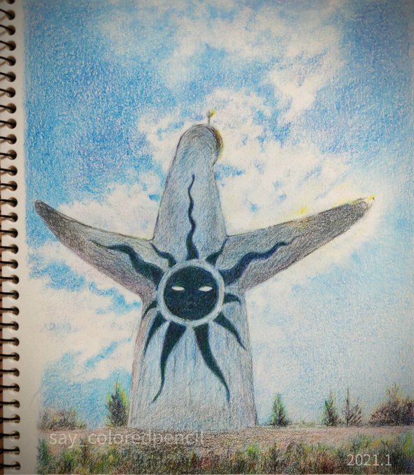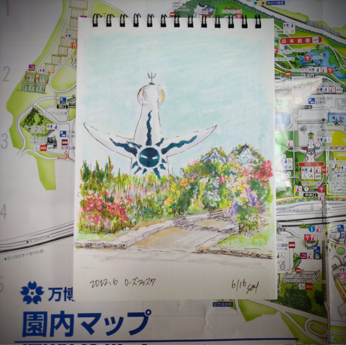 【太陽の塔・よこがお】2022.6 太陽の塔、連投で〜す😝 朝から2枚描いた〜💖 大好きな場所、楽しかった思い出 サクッと描き留めておくの楽しい🥰 太陽の塔の横顔、曲線が好き🥰 猫背なのになぁ😅 赤い稲妻がカッコイイ✨ #太陽の塔 #万博記念公園 #コピック #taiyounotou #expo70park #copic
