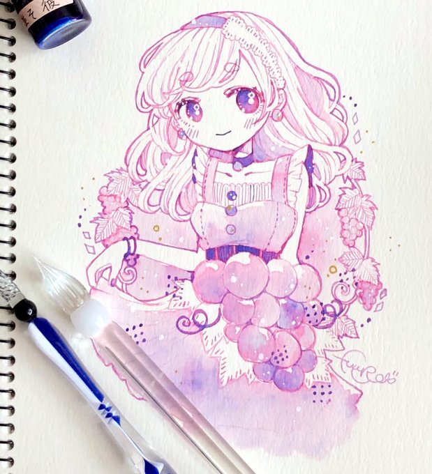 #万年筆インクのTwitter展覧会 素敵タグ便乗いたします👀 作風に統一感ゼロ、その時々で思いついたインク遊びをのんびりマイペースにやってます 筋金入りのキラキラ好きですがインクはラメ揺らぎフラッシュ変色平坦なんでも好きです楽しいです #インク沼 #万年筆インクイラスト