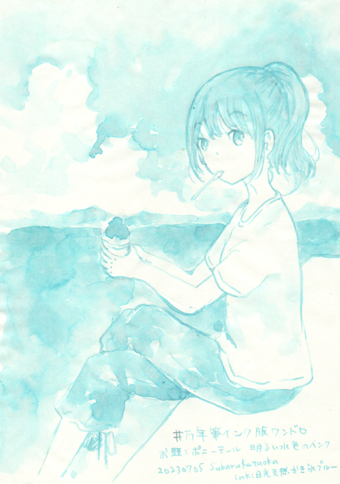 #万年筆インク版ワンドロ 色:鮮やかな黄色系、または近い色 お題:「カトラリー」 ってことでミツバチ娘 このワンドロって一色縛りとかじゃなかったよな…!? Ink 上野文具 レモン牛乳イエロー プラチナ万年筆 ブランセピア