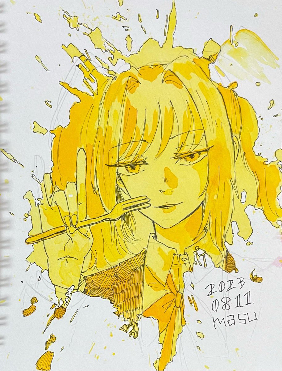 今日もワンドロをやりたいのでやります!!!! もしよろしれば〜! 描き初めのタイミングはいつでもいいし、いつ投稿しても構いません。1時間でなくとも大丈夫です。 私はなんとか1時間を目指します… 色:鮮やかな黄色系、または近い色 お題:「カトラリー」 #万年筆インク版ワンドロ